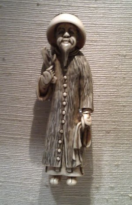 The British Museum is a must-do on a cultural trip to London, but I must admit that I didn't find it as interesting as I had expected. Admittedly I had quite sore tendons after walking a lot and it had been a long day, but I found the museum dull. They claim to have 8 million items but it seems the result is a need to show the most unique items in every era which doesn't always make for the best overall impression. I did see mummies though. They didn't move. One thing I wonder is whether some of the items would not be better off in their original countries. If they cannot be displayed better than this, maybe someone else can do something better.The figurine to the right is an ivory etching from China. I just found it cute and well made and I'm not aware of any specific cultural significance though it probably wouldn't be on display otherwise.