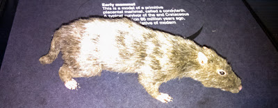 The dinosaur skeleton to the left is what meets you if you enter by the main entrance of the museum, together with some encouragements to donate money. As many other museums in London, admittance is free of charge which almost feels like a steal so donating money or buying guide books is well spent money. To be fair this one skeleton is a replica, since they don't want something bad to happen to the real bones, but that does not really matter. Like many other museums here, if you get really interested, it is actually hard to "complete" the museum in one session so leaving room in a plan for re-visits might be a good choice. Above is a something that possibly is a human predecessor. At least a very early mammal. Looks like a rat so imagine what rats might be in 100 million years of evolution.I wish I had had more good images from the museum, but it was either too dark (the dinosaur exhibition) or I was just too interested to spend time on taking pictures. Otherwise you could have seen picture of how evolution had created different beaks (yes, Darwin's classic example) or an image of a blue whale (they are very very big) or a movie from the Kobe Earthquake simulator (I managed to stand without holding on to something but it would have been very scary if it had been real).